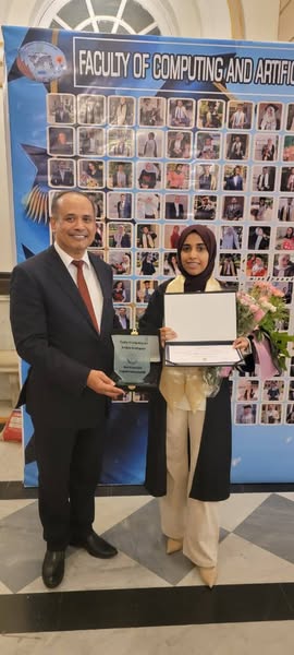 في حفل بهيج ومميز، كرمت جامعة القاهرة الطالبة اليمنية نسمة ياسر عبدالقادر الفروي، لحصولها على المركز الأول على دفعة 2025 في كلية الحاسبات والذكاء الاصطناعي، تخصص الأمن السيبراني، بمعدل تراكمي قدره 3.94 من 4.